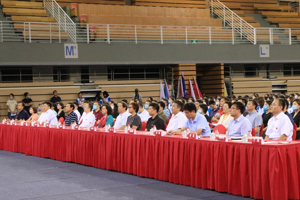 捐赠仪式后,党委副书记、副校长贾文键及众多知名校友共同启动“八十载辉煌足迹,全球校友同心接力跑”活动。我院卓悦同学作为留学生代表参与传递接力棒、接力旗环节。