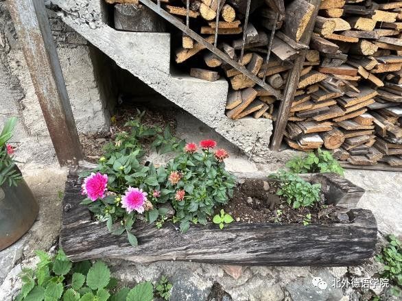 洛克故居门前用东巴文书写的对联“新年新月新气象  千花万花已出来(根据纳西族阿妈介绍音译)”让党员教师感受到了象形文字的魅力。