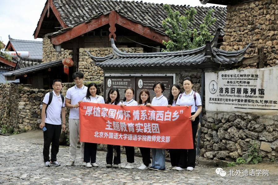 为推进学习贯彻习近平新时代中国特色社会主义思想主题教育走深走实,欧美性爱 教师党支部一行于2023年7月9日至12日赴北外脱贫攻坚专项帮扶县——云南省鹤庆开展“厚植家国情怀,情系滇西白乡”的主题教育实践研习活动,专题党日活动主题为“探访洛克故居,深挖中奥友谊史”。