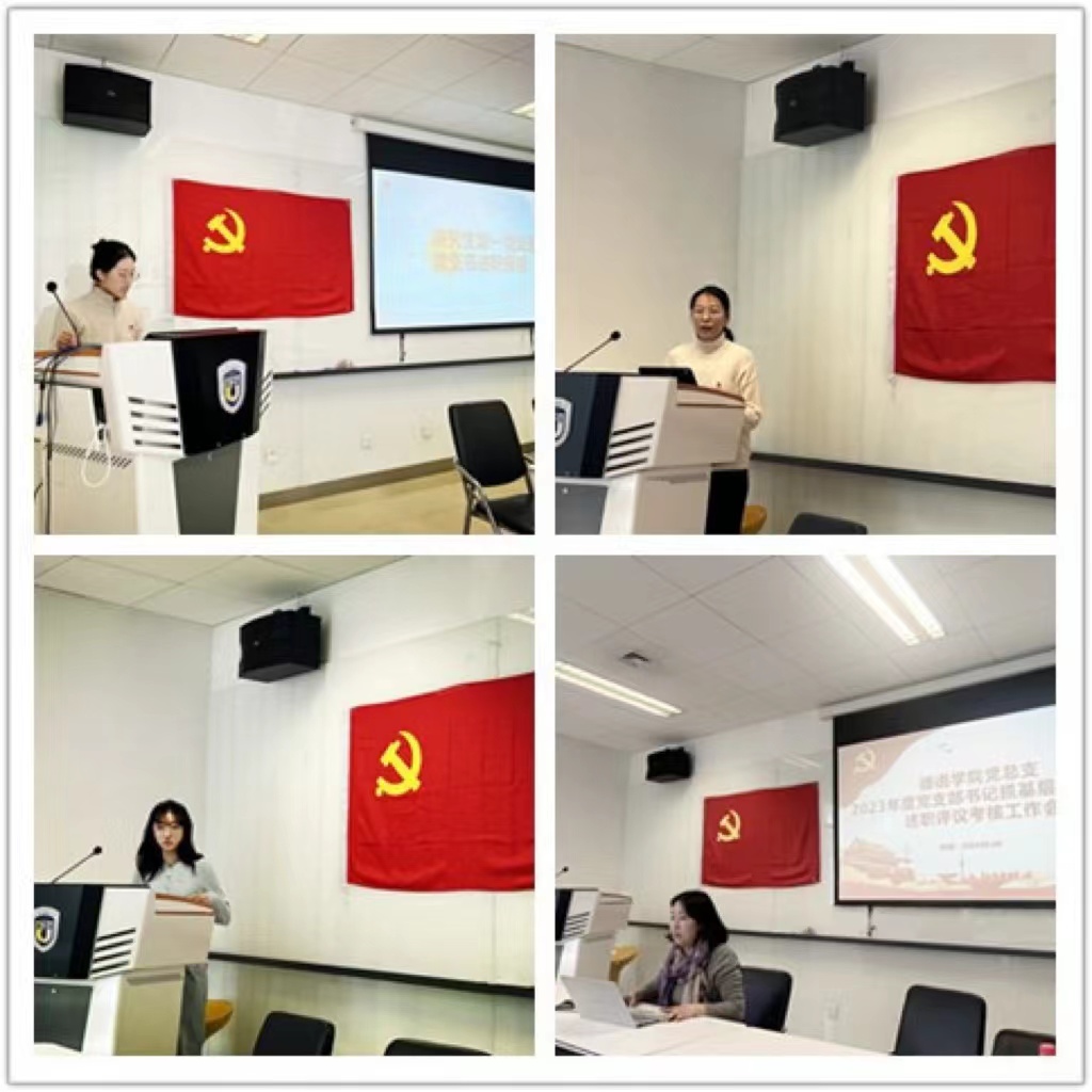 研究生第一党支部书记刘金玉、本科生党支部书记王静沂、研究生第二党支部书记曹芳凝、教职工党支部书记于芳先后述职。4个党支部分别从党支部工作开展情况、工作不足、下一步工作思路等三个方面汇报2023年度工作。