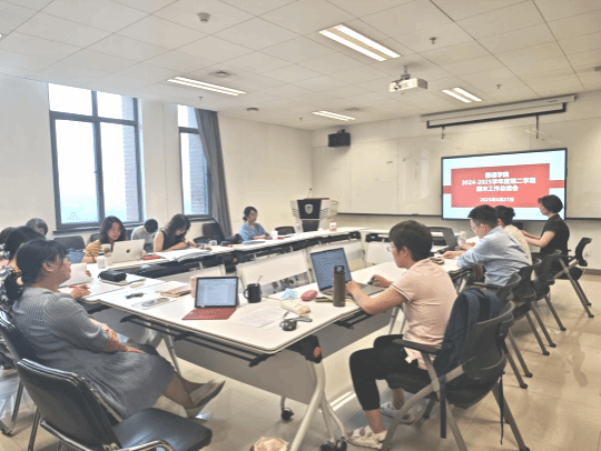 基础教研室、研究生教研室、文学教研室、语言学教研室、翻译教研室、外交教研室、经济教研室、跨文化教研室、教师党支部、工会负责教师,党政联席会班子成员依次汇报了本学期的工作开展情况、取得的成绩以及存在的不足。