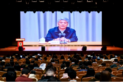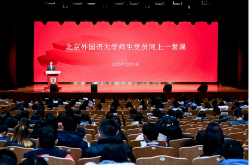 师生党员同上一堂“理论大课”,集体学习由中央党校(国家行政学院)分管日常工作的副校长(副院长)谢春涛讲授的“中国共产党与中华民族伟大复兴”专题报告。北方工业大学原党委书记郑文堂到场指导,北外党委书记李海主持培训。