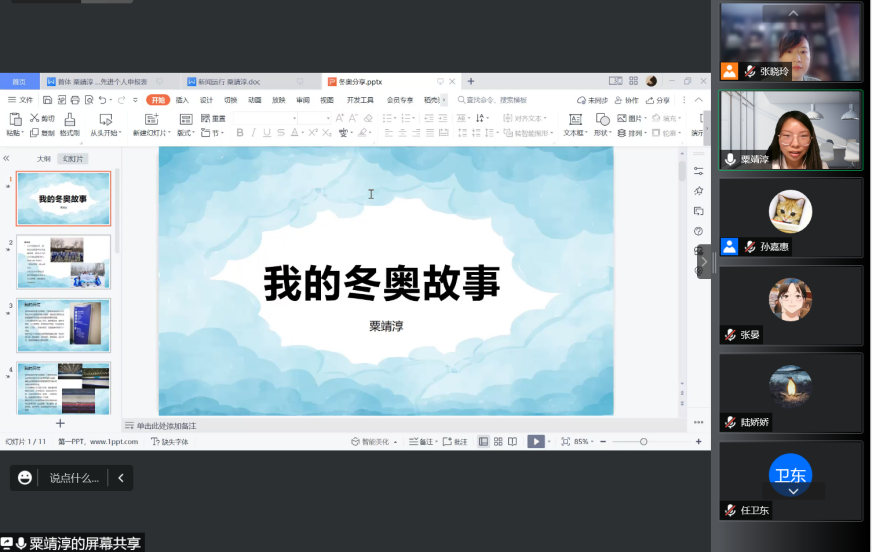 欧美性爱 20级硕士生王文卓同学借助多张珍贵照片,回顾了自己作为奥委会主席巴赫先生的奥林匹克大家庭助理(OFA)志愿者的经历。作为巴赫主席3名助理志愿者之一,王文卓同志不仅担任其在德语方面的即时陪同翻译,也承担巴赫主席的工作日程翻译、交通工具及礼宾事宜的对接等工作。她对志愿者在工作中表现出的严谨精准及北外校友、北外学子在其中表现出的团结印象深刻。此外,王文卓同志还分享了自己于2008年北京夏季奥运会时埋下志愿者梦想的种子、2022年成功圆梦北京冬奥会的“奥运情缘”。