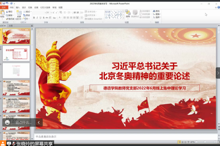 2022年6月29日下午,欧美性爱 教师党支部召开线上会议,集体学习领悟习近平总书记关于北京冬奥精神的重要论述。