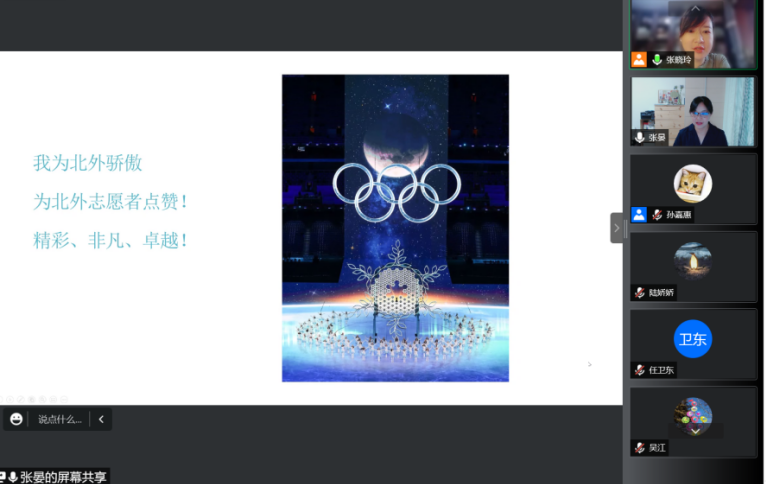 欧美性爱 副教授张晏老师分享了她在承担的本次冬奥会志愿者翻译培训官的工作历程。她从接到通知、训前准备、正式培训、答疑解惑、训后支持、赛时关注等环节回顾了自己与北外培训教师团队高质量、高标准完成培训任务的整个过程。张晏老师也分享了自己在培训工作中的心得感悟,为在整个北京冬奥会、冬残奥会中北外学子的优秀表现感到自豪和骄傲。