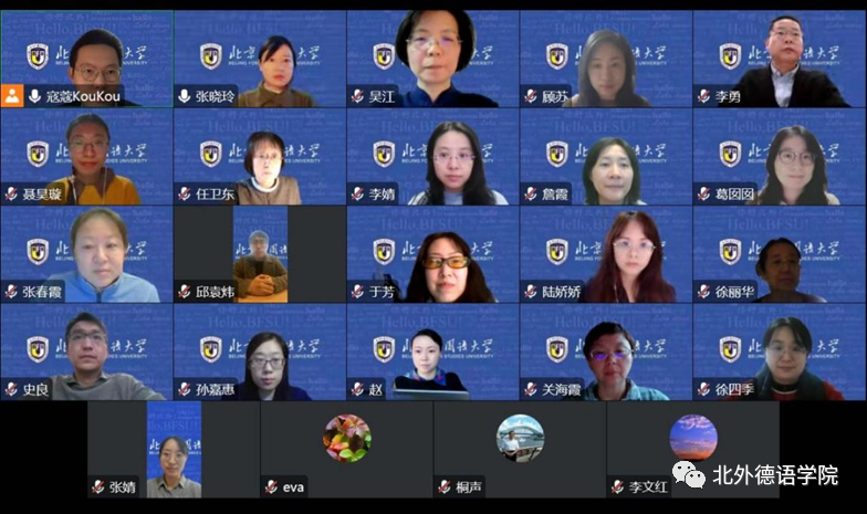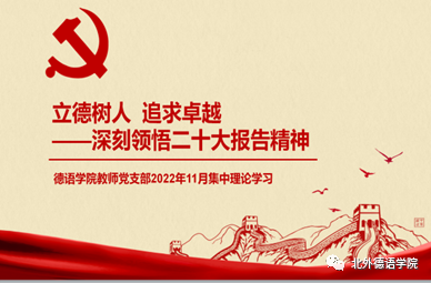 党总支书记、院长吴江结合自己对汉语“德”字的学习心得及北外德语专业历史的发展,分享了自己学习二十大报告的感悟,强调“立德树人”是高校党员教师的职责所在,全体党员教师应在教研实践中起到模范带头作用,不断追求卓越。吴江同时代表学院对疫情防控中勇挑重担的党员教师以及全体班主任老师给予了高度认可。