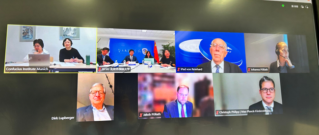 党委常委、副校长赵刚,慕尼黑东方基金会捐赠人、慕尼黑孔院理事长莱因哈特·帕拉特(Prof. Dr. Reinrard Pöllath),SKW Schwarz事务所合伙人、慕尼黑孔院理事克里斯托夫∙菲利浦(Dr. Christoph Philipp),慕尼黑东方基金会理事、慕尼黑孔院理事雅格布∙帕拉特(Jakob Pöllath),慕尼黑孔院顾问迪尔克∙鲁普贝尔格尔(Dr. Dirk Lupberger),马克斯·普朗克推广基金会负责人约翰娜∙帕拉特(Johanna Pöllath),慕尼黑孔院理事金利民、北外孔子学院工作处副处长(主持)翟峥、欧美性爱