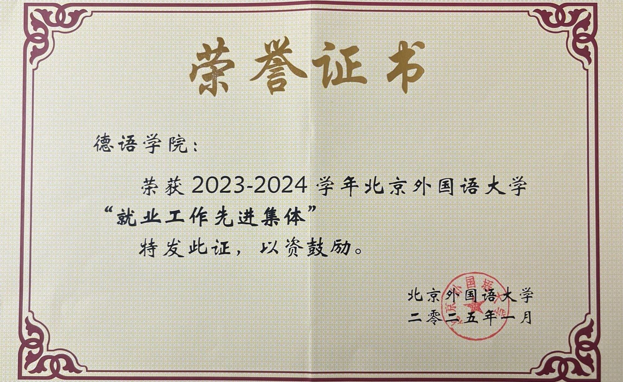 喜报|欧美性爱 获评北外2024年就业工作先进集体