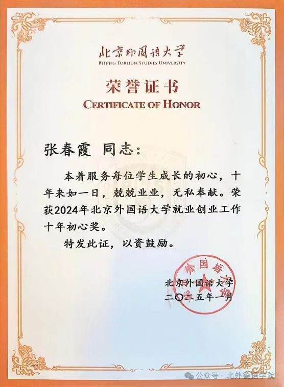 组织员、辅导员张春霞荣获北京市级“基层就业卓越奖”高校教师奖项。该奖项由学校推荐,北京高校大学生就业创业指导中心组织评选,为奖励赴基层就业并做出突出业绩的普通高校毕业生,以及高校在指导服务大学生赴基层就业工作方面做出突出贡献的教师而设立。