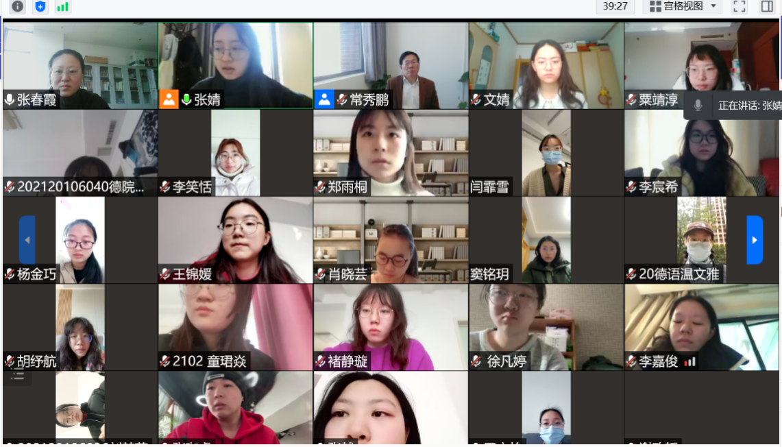 党总支书记常秀鹏对冬奥会志愿者们的服务工作给予极大的肯定,感谢大家为冬奥会的顺利举办所做的努力,志愿工作的经历对每位同学来说都是非常珍贵的,并提醒大家注意身体,充实隔离生活,多运动,保持身心健康。同时告知大家学院已制定了详细的教学方案,线上线下相结合,切实解决了隔离期间的上课问题。