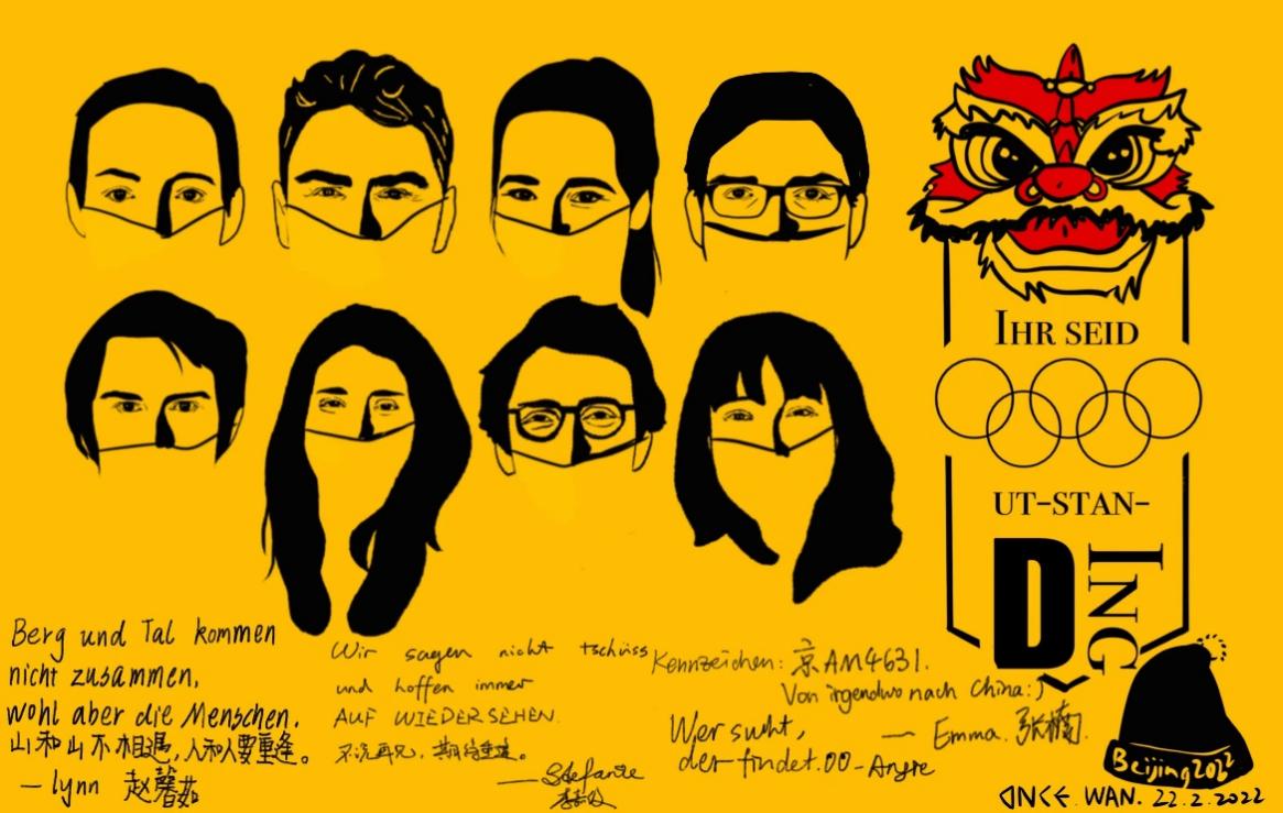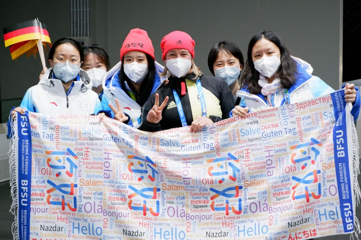 的研究生孙文菊、张楠、赵馨茹和本科生李嘉俊、万思妤在赛会期间担任北京冬奥村德国代表团助理,提供语言支持服务,全方位保障德国运动员的“衣、食、住、行”,涵盖抵离入住、交通物流、卫生防疫、赛事信息、资料准备等各个方面,她们出色的后勤保障工作助力德国代表团在本届冬奥会上取得了优异的成绩。