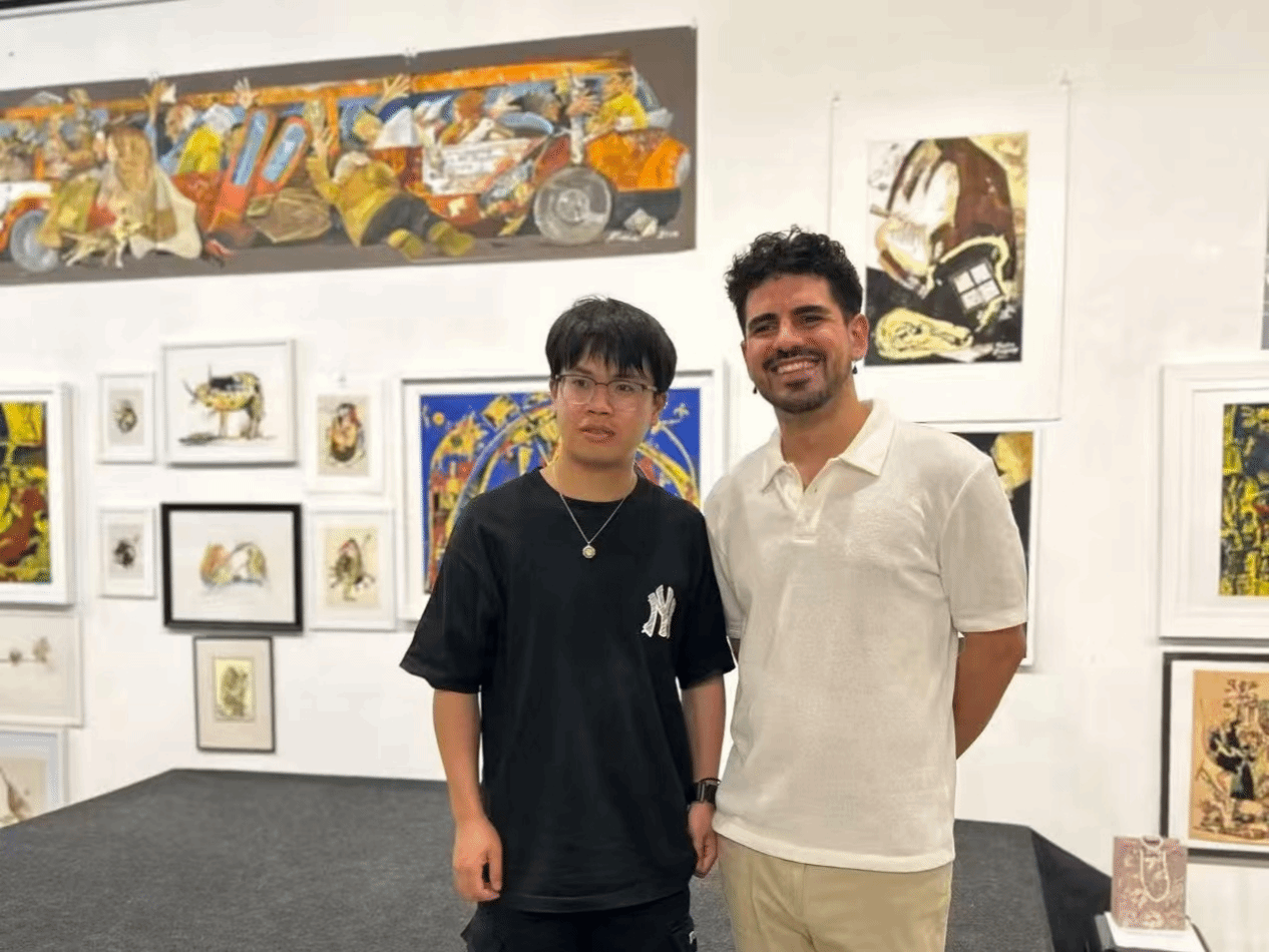 周于旸和阿德里安·普维塞的合照