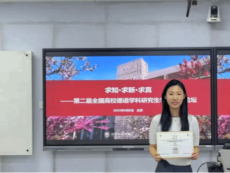 组委会搭建的高水平交流平台,它让我更加深刻地认识到,科研并不是闭门造车,而是要在交流碰撞中迭代,在实践反馈中成长。未来我将以本次大赛为起点,以更加严谨的态度深耕这一领域,把“守正创新”四字真正融入学术实践的每一个细节。祝愿全国高校德语学科研究生学术创新论坛越办越好!