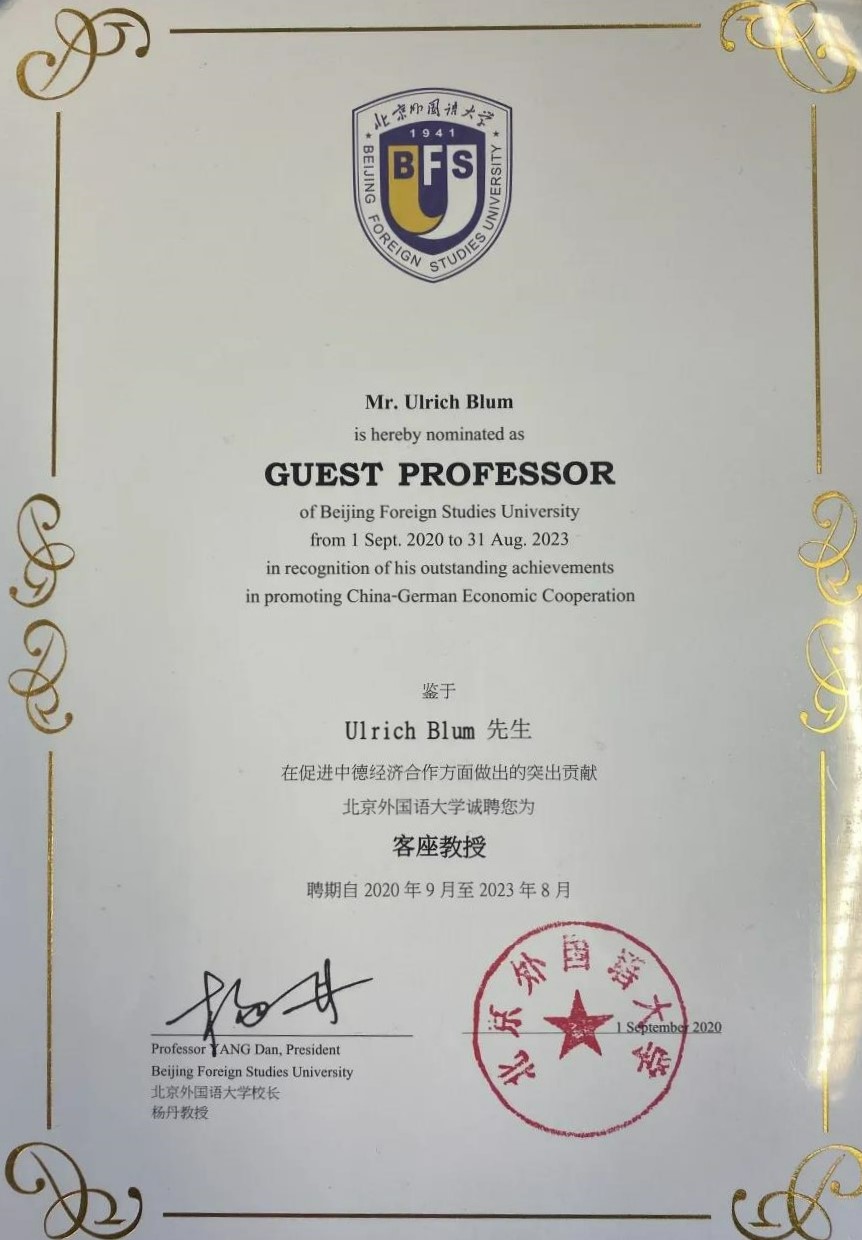 鉴于其在促进中德经济合作方面做出的突出贡献,德国哈勒-维滕贝格大学经济系讲席教授、弗劳恩霍夫协会材料经济学中心创始人卜玉洗(Ulrich Blum)自本学期起被聘为欧美性爱