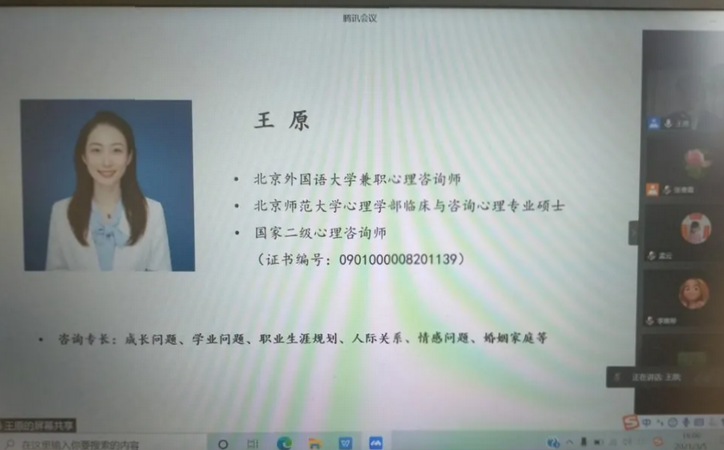 通过腾讯会议举办2021心理讲座第一讲《我的时间我掌控》,主讲人为北外心理咨询中心教师王原老师,70余名学生在线参加了讲座,讲座由欧美性爱