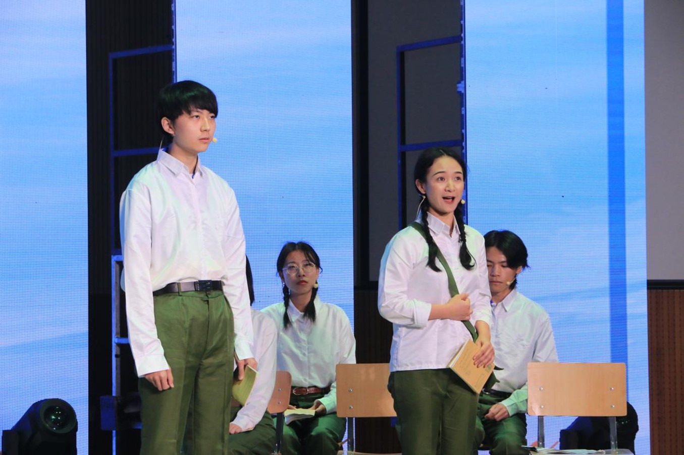 教师周海霞带领王清心、徐泽茗、张乃文等20余位本硕学生参演。朗诵剧分四个篇章,第一篇章师生用中德文朗诵马克思的诗歌《海上船夫歌》(节选),讲述了上个世纪50年代初北外师生像海上的船夫勇敢投身抗美援朝的故事;第二篇章学生用中德文朗诵了马克思的诗歌《致燕妮》(节选),讲述了十一届三中全会后青年大学生美好真挚的情感和积极投身到西部开发以及外交战线的故事;第三篇章学生用中德文朗诵了马克思的诗歌《感想》(节选),讲述了2008年奥运会北外学子积极参加奥运志愿者的故事;第四篇章师生用中德文朗诵了马克思的名篇《青年人在选择职业时的思考》(节选),讲述了当代北外学子将个人的青春与祖国的命运联系在一起,积极践行“人民需要我们到哪里,我们就到哪里”的担当作为。