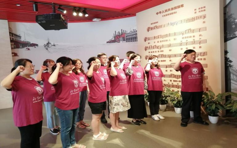 7月9日下午,老师们参观了位于上海杨浦区的全国爱国主义教育示范基地——国歌展示馆。国歌馆以国歌故事为主线,全面展示了《义勇军进行曲》诞生、传播、立法及其相关国歌知识。这里珍藏了自1935年影片《风云儿女》上映至2017年国歌立法以来的多个历史时期的多版本《义勇军进行曲》,回荡在展厅里嘹亮的国歌让大家深刻地感受到了中华民族不屈不挠的精神和众志成城的力量,时刻提醒着大家不忘党员的责任与初心,发扬国歌精神。欧美性爱