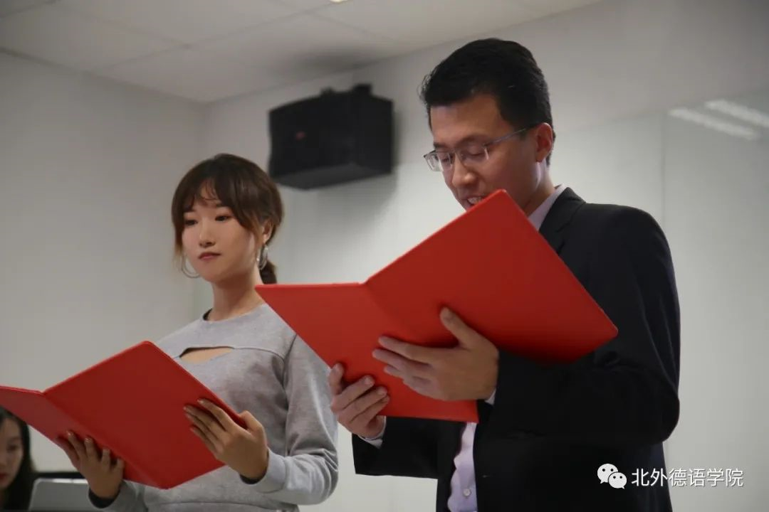 Henrik Dittmann先生与姜浩远同学共同朗诵诗歌Septembermorgen