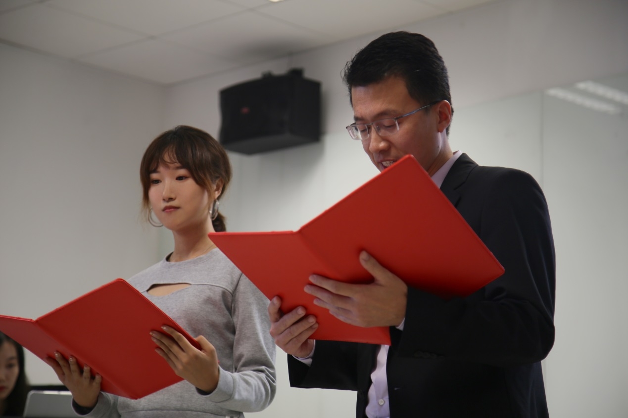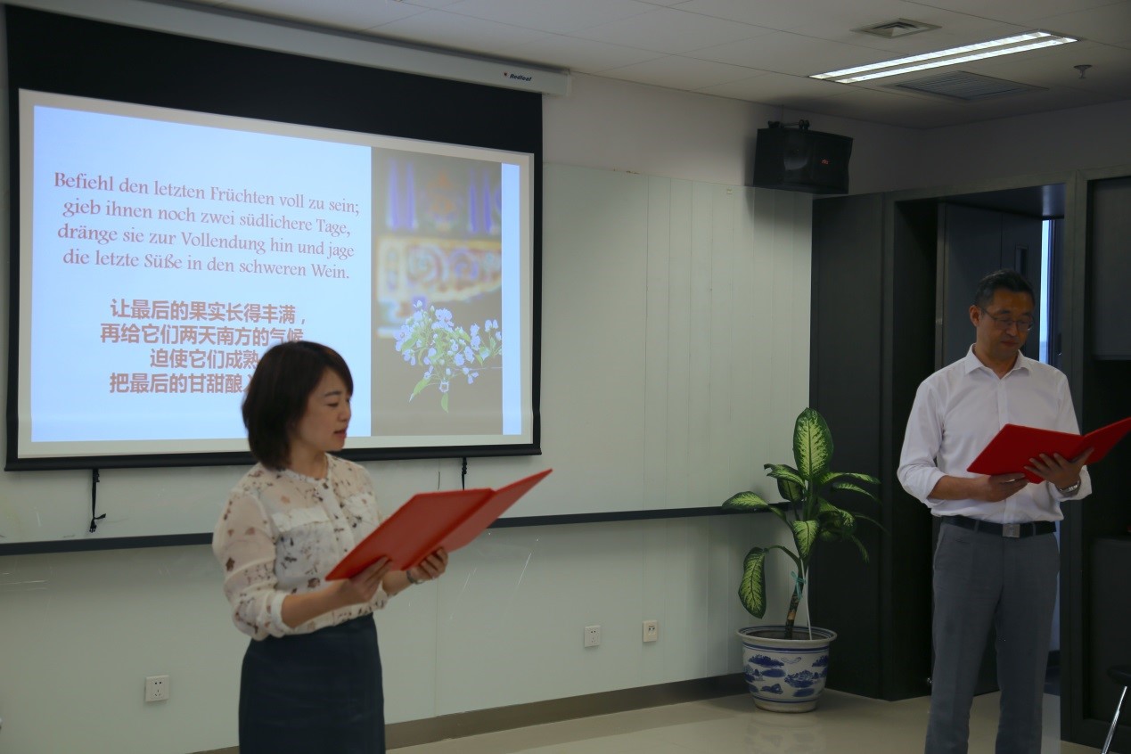 Henrik Dittmann先生与姜浩远同学共同朗诵诗歌Septembermorgen