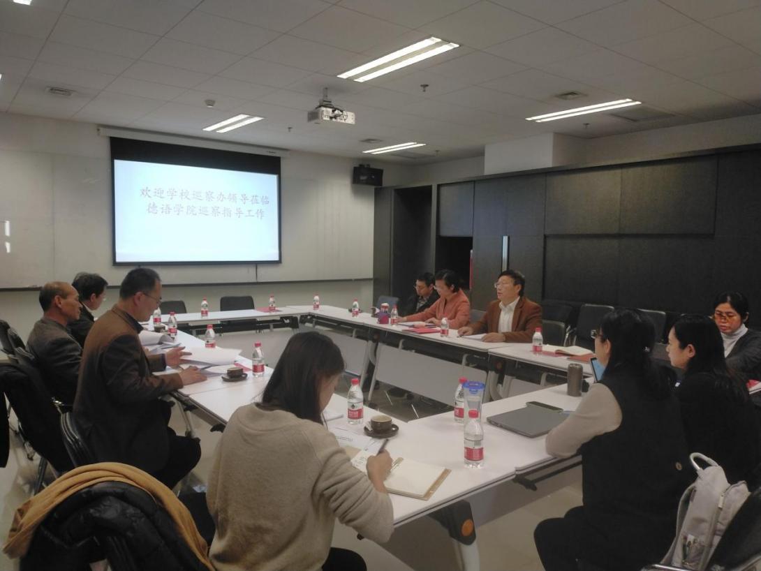 整改的总体情况,并结合具体案例予以了详细汇报,如规范研究生招生工作、规范学术委员会和学位委员会工作、加强党对外事工作的领导和把关等。吴江指出,学院教工党支部、学院工会组织形式多样、寓教于乐的学习参观、文体活动,取得了很好的凝聚人心的效果;学院围绕校庆开展的课程思政开放周、“如何讲好中国故事”的教学展示、德语诗颂会等活动润物无声地推进了课程思政建设;学院为青年教师在教学、科研方面的成长积极搭建平台,青年教师在教师基本功大赛、国家级以及省部级项目申报方面取得了优异成绩。一年来,学院教职工精神面貌焕然一新,集体凝聚力日趋加强。