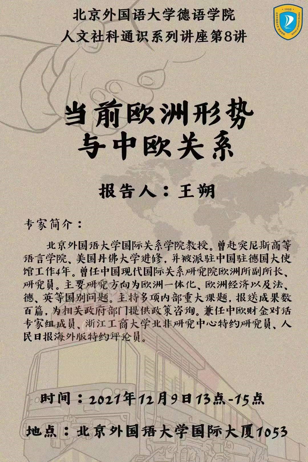 师生做了《当前欧洲形势与中欧关系》的报告。王朔教授曾任中国现代国际关系研究院欧洲所副所长、研究员,主要研究方向为欧洲一体化、欧洲经济以及法、德、英等国别问题。