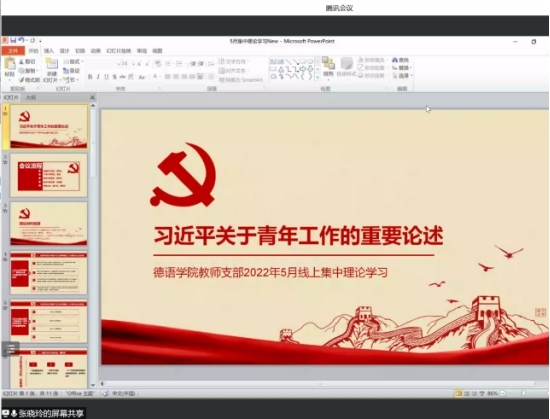 教师党支部召开线上会议,集体学习领悟习近平总书记对青年工作的重要论述。