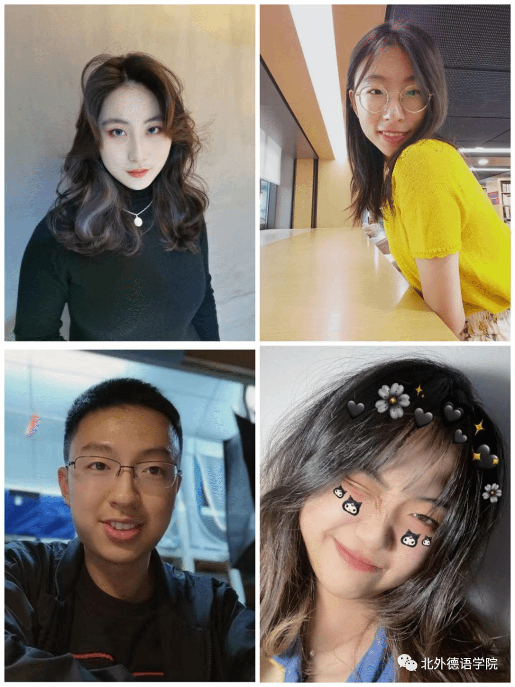 经过比赛的淬炼,另外两名队员——大二的戴雨昕和大一的姚宇阳不约而同地直言“收获很多”。戴雨昕说,我一开始只是抱着参加试试的心态,还为自己留有退路。准备作品的时间有限,又因为疫情不得不采取线上的形式,期间我还一度因为返乡在酒店集中隔离,可谓困难重重。在指导老师和队友们的鼓励下,我在练习时越发勇敢坚定。选片过程也是深度视听训练的过程,即便是在紧张的比赛现场,观看聆听其他学校参赛队伍的优秀作品也让我的德语能力得到了提升。