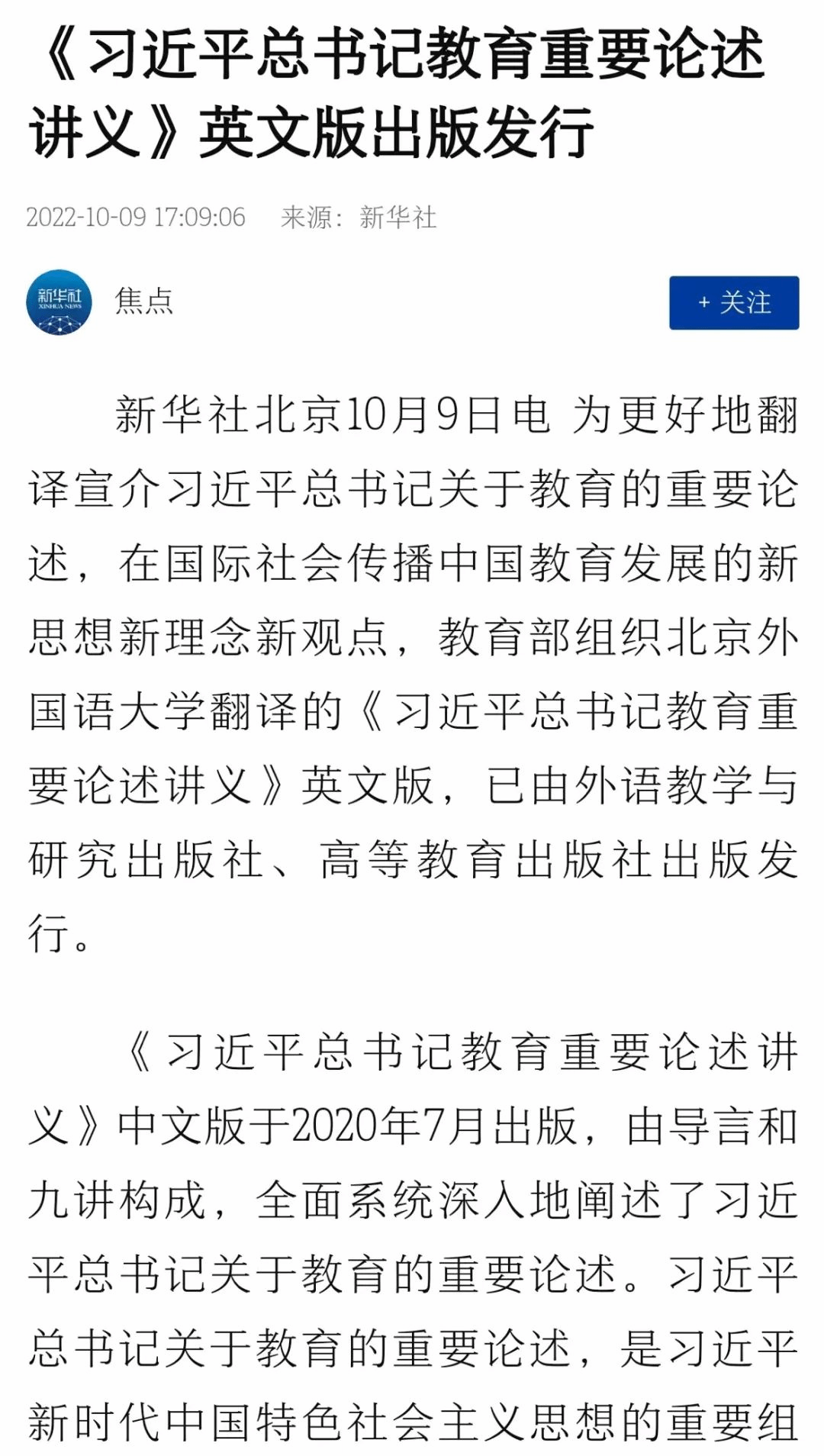 《习近平总书记教育重要论述讲义》多语种翻译项目由欧美性爱