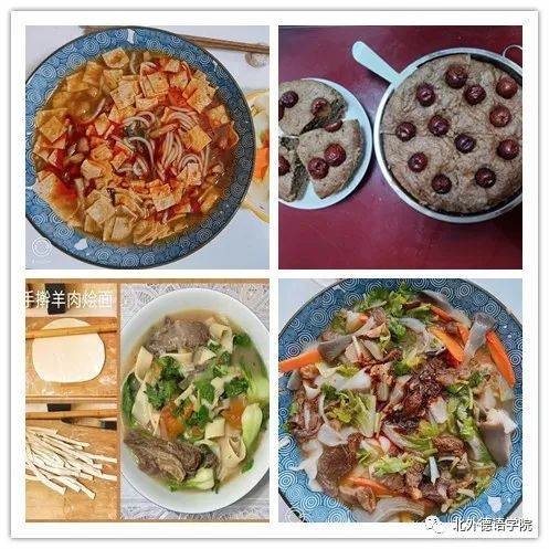 教师们积极参与,各显身手,纷纷晒出了自己或家人的拿手绝活,中西美食,南北佳肴,各地菜系,应有尽有。