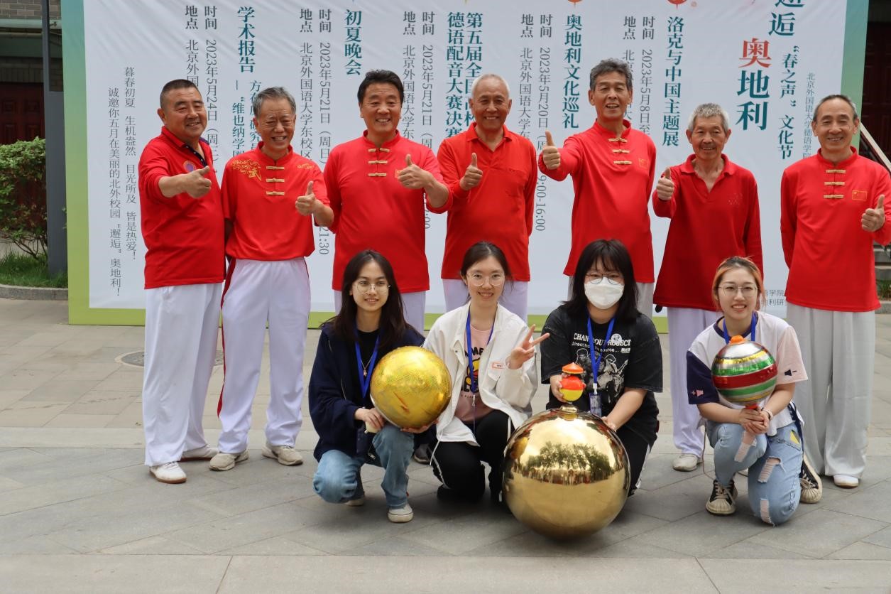20级本科生余紫萌同学负责的《情寓于竹,四海翻花——文化强国战略下用德语向世界展示空竹文化之美》项目也参加了本次文化巡礼中,特意邀请到了多位空竹文化传承人在巡礼现场进行了精彩的空竹表演,赢得了中外各国同学的喝彩。随后,又开展了空竹的现场教学,向外国友人传播了中国的传统文化,展示了空竹之美。
