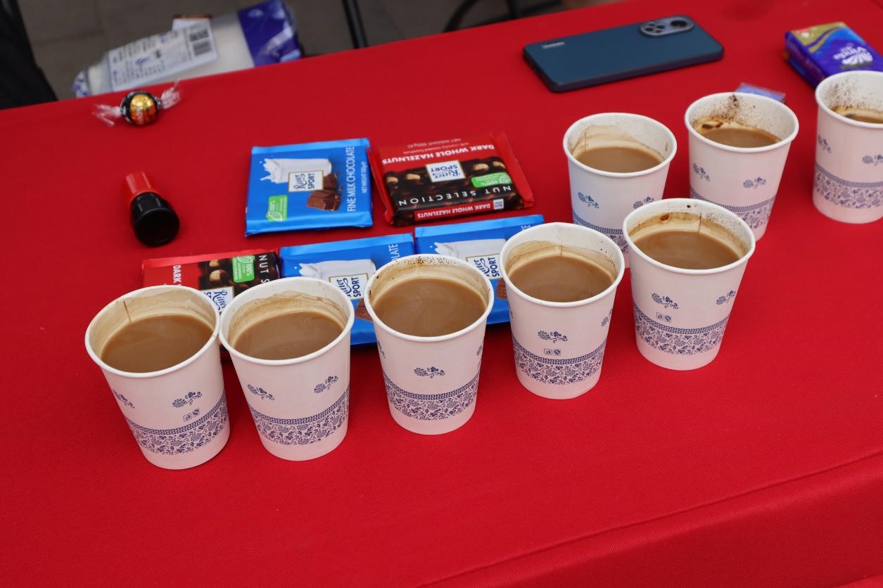 的同学也纷纷加入了方言识别与模仿的挑战。除此之外,本摊位的现场制作咖啡这一活动也受到了大家的热烈欢迎。