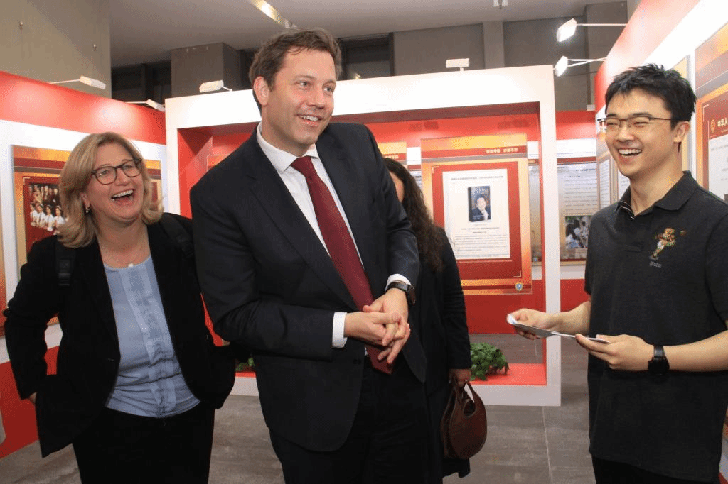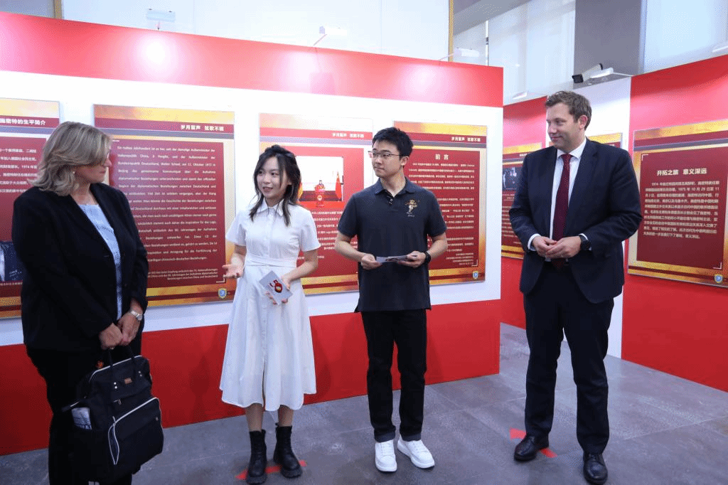 2019级本科生曹涵和2022级本科生黄婉茹为克林贝尔一行担任志愿讲解员。两位学生精彩的讲解以及热情洋溢的精神面貌赢得了德方嘉宾的称赞。