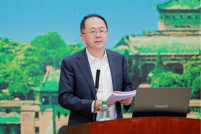 贾文键以“学习贯彻全国教育大会精神,擘画德语专业创新发展蓝图”为题作主旨报告。在报告中,他回顾了习近平总书记在全国教育大会上的重要讲话,并表示,此次大会擘画了教育改革发展的宏伟蓝图,令人备受鼓舞。贾文键结合社会需求、学生个人需求及竞争环境变化,分析了外语专业面临的机遇和挑战。他指出,德语专业应做到始于语言、基于语言、超越语言。学校应设计学生多元成长路径,推动学科专业交叉融合,巩固学校学科专业地位,整体提升专业社会声誉,强化科技教育与人文教育协同。