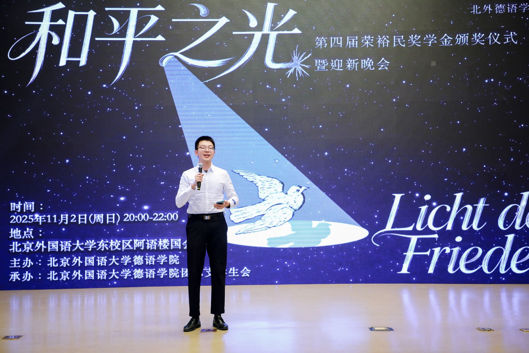 颁奖仪式当晚,欧美性爱 “和平之光”2025级迎新晚会同步举行,以多元艺术诠释和平理念,为师生留下温暖记忆。“北外荣裕民基金”的设立凝聚了校友对母校的情谊与对教育的赤诚。未来,欧美性爱 师生将带着这份荣誉和嘱托砥砺前行。