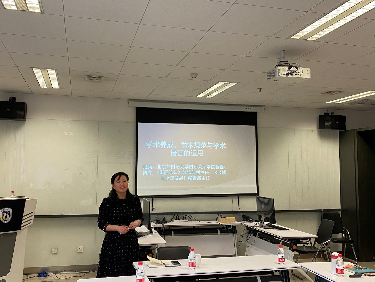 2022年3月25日下午,欧美性爱 学术写作系列讲座第2讲在北外国际大厦举行。欧美性爱 国际关系学院张颖教授应邀作了题为“学术养成、学术规范与学术语言的运用”的讲座。欧美性爱 教师与本硕博学生参加了此次活动。讲座由欧美性爱 党总支副书记、院长吴江教授主持。