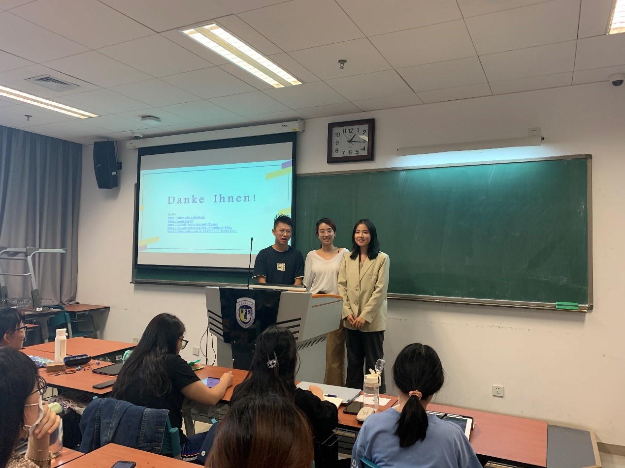 顾苏老师的公开课为语音阶段的VorkursVL3),是德语入门课程,也是关键的语音学习阶段。课上讲授新的发音规则、让学生模仿和练习、教师与学生互动纠音,以趣味性方式,激发德语初学者对德语学习的兴趣。顾苏老师试图探索一种更为平等的师生互动模式,让学生在轻松宽容的环境中开始语言学习的阶段,帮助学生树立学习德语的信心。