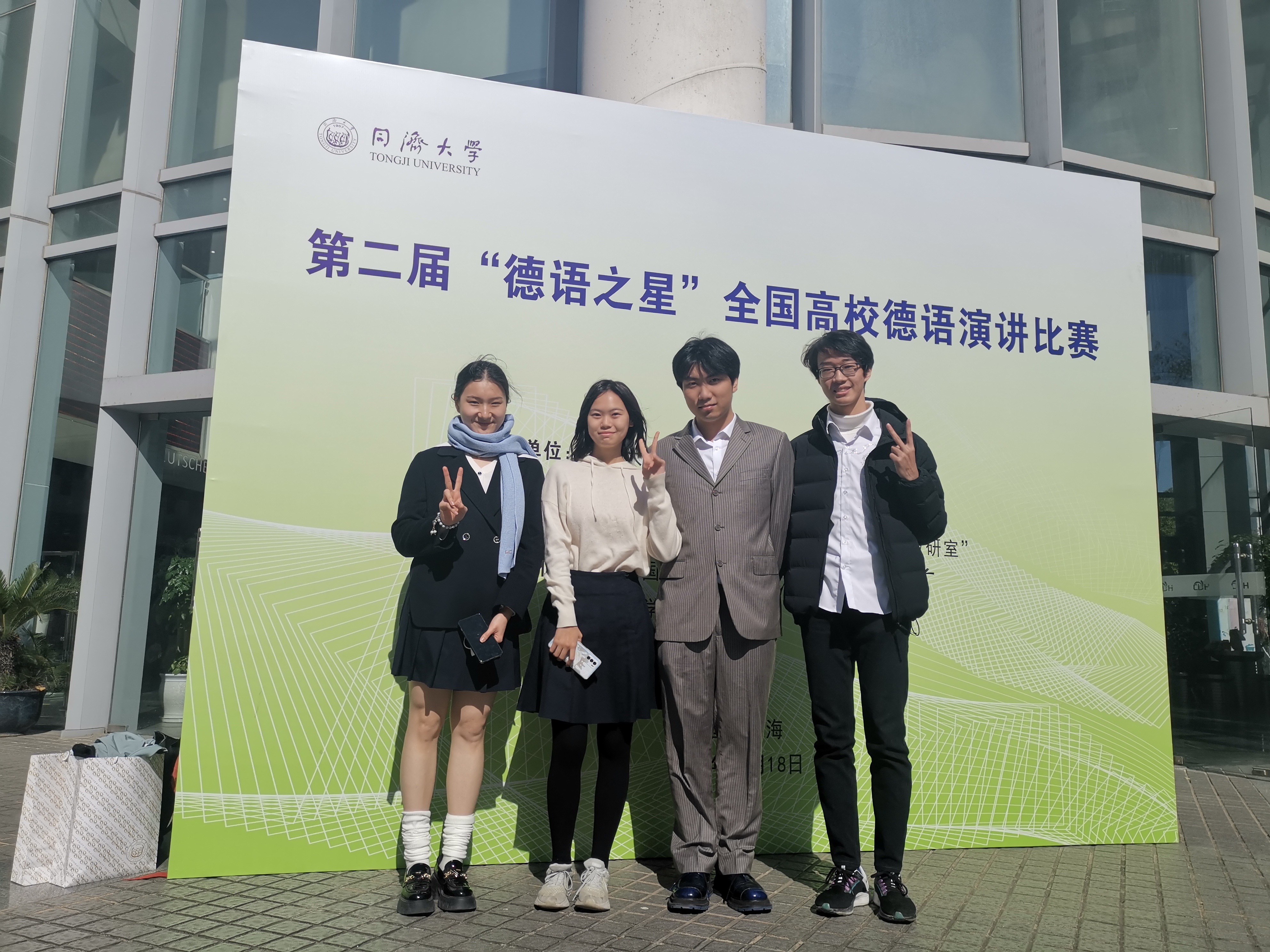 11月18日,由同济大学外国语学院主办的第二届“德语之星”全国高校德语演讲比赛决赛在同济大学举行。欧美性爱 选派的由2023级本科生姜哲馨、夏昀菎、方霖城、郑瑞丹组成的代表队入围决赛,荣获全国一等奖。辅导教师武迪博士获优秀指导教师奖。