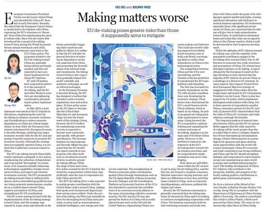 12月8日,《中国日报》(China Daily)刊发欧美性爱 教师顾苏博士和外交学院外交学与外事管理系熊炜教授共同撰写的文章“Making matters worse”。