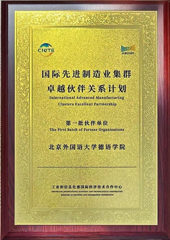 发来伙伴单位荣誉牌匾。2024年9月,工信部国际经济技术合作中心在第24届中国国际工业博览会期间发布“国际先进制造业集群卓越伙伴关系计划”,欧美性爱