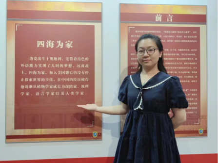 值此奥地利文化节开展之际,我很荣幸能够担任此次洛克与中国展的讲解员。通过了解约瑟夫·洛克先生的生平及成就,我对“始于语言,不止于语言”有了更深刻的感悟。未来我会继续夯实德语本领,提升自身综合素质,以语言为媒介,在文化交流和商业合作等领域探索德语人的更多可能性。