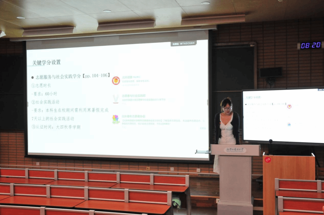9月12日下午,在中文楼文华厅欧美性爱 举行本科生培养方案介绍会党总支委员、副院长寇蔻结合本科生培养方案,为新生详细介绍了本科培养方案,如课程设置、交换学习、教学纪律等提出欧美性爱 拥有高层次的国际交流活动,积极推动中外人文交流。学生可以体验外国专家授课与外国学者举行的讲座讲学。此外,大三的学生有机会前往德国哥廷根大学和帕绍大学进行交流学习,为学生们提供了宝贵的国际视野和实践经验。本科教学秘书于芳参加介绍会。