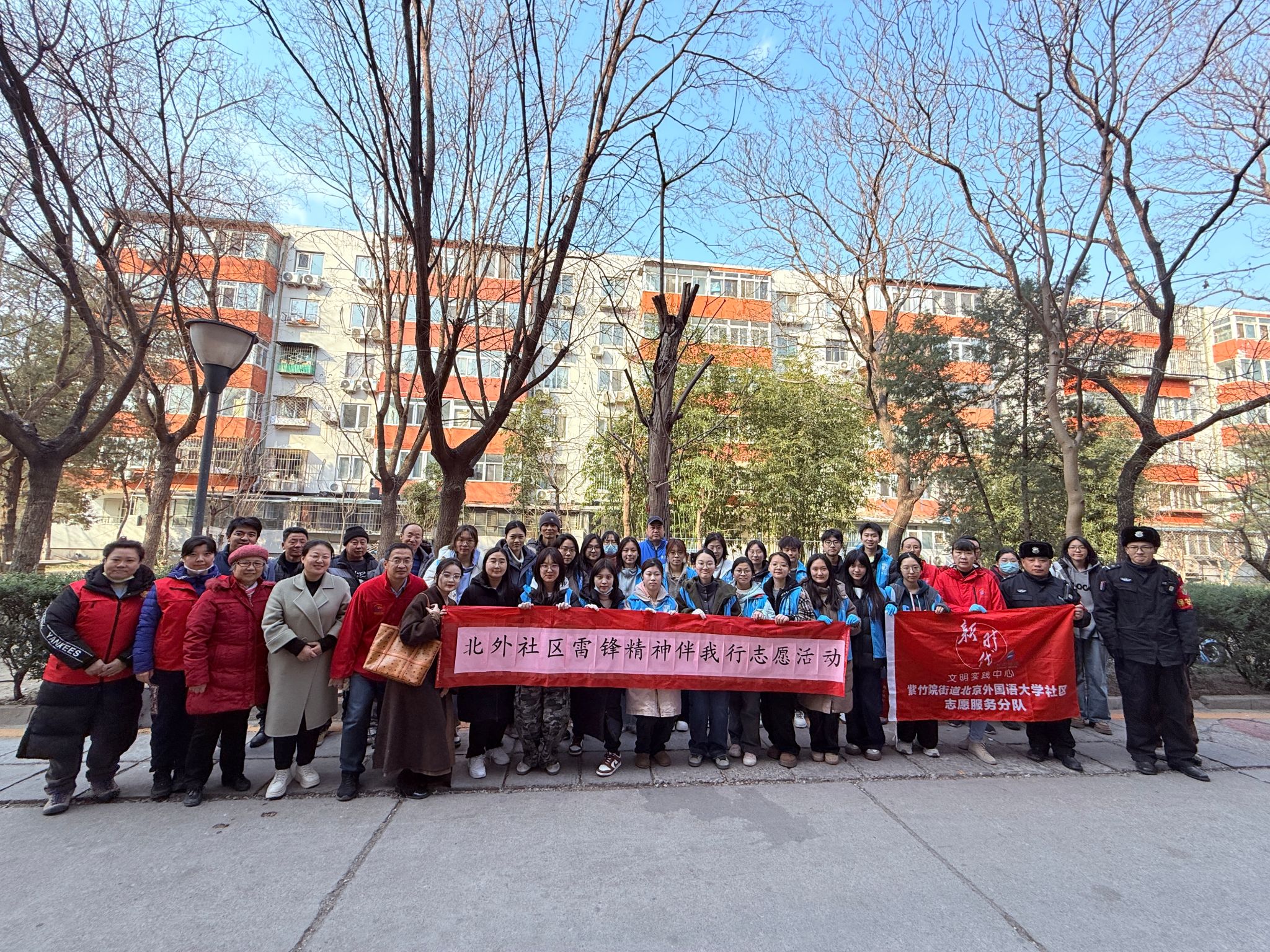 阳春三月芳菲始,薪火相传正当时。在毛泽东同志“向雷锋同志学习”题词发表62周年之际,北外欧美性爱 团总支学生会联合北外社区,于3月5日组织开展了“城市清洁日”主题学雷锋志愿服务活动,将雷锋精神的火种播撒在春意盎然的校园。