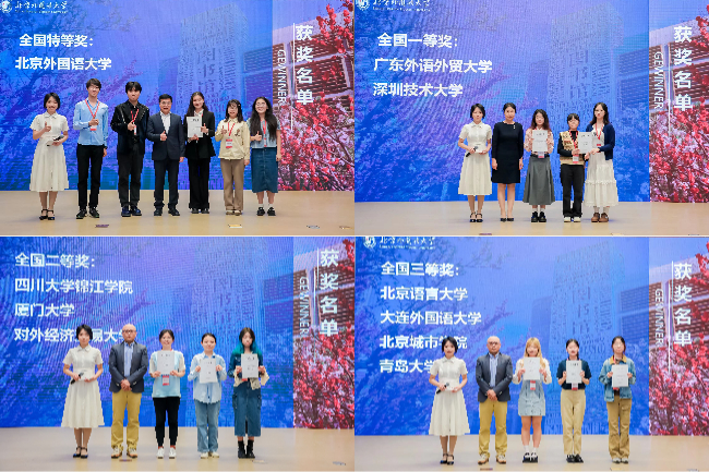 代表队获得全国特等奖,广东外语外贸大学和深圳技术大学代表队获得全国一等奖,四川大学锦江学院、厦门大学和对外经济贸易大学代表队获得全国二等奖,北京语言大学、大连外国语大学、北京城市学院和青岛大学代表队获得全国三等奖。