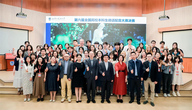 第六届全国高校本科生德语配音大赛自今年4月14日开赛以来,受到了全国高校德语学科点的高度关注,初赛共吸引全国34所高校参与,100余名来自北京各高校的学生线下观看决赛。本次大赛不仅是北外德语专业实践教学的积极尝试,也是落实德智体美劳“五育并举”方针的举措之一。赛事为全国各高校德语学科点学生之间的交流搭建了重要平台,激励青年德语学子在实践中成长为具有家国情怀、全球视野、专业本领的复合型人才。
