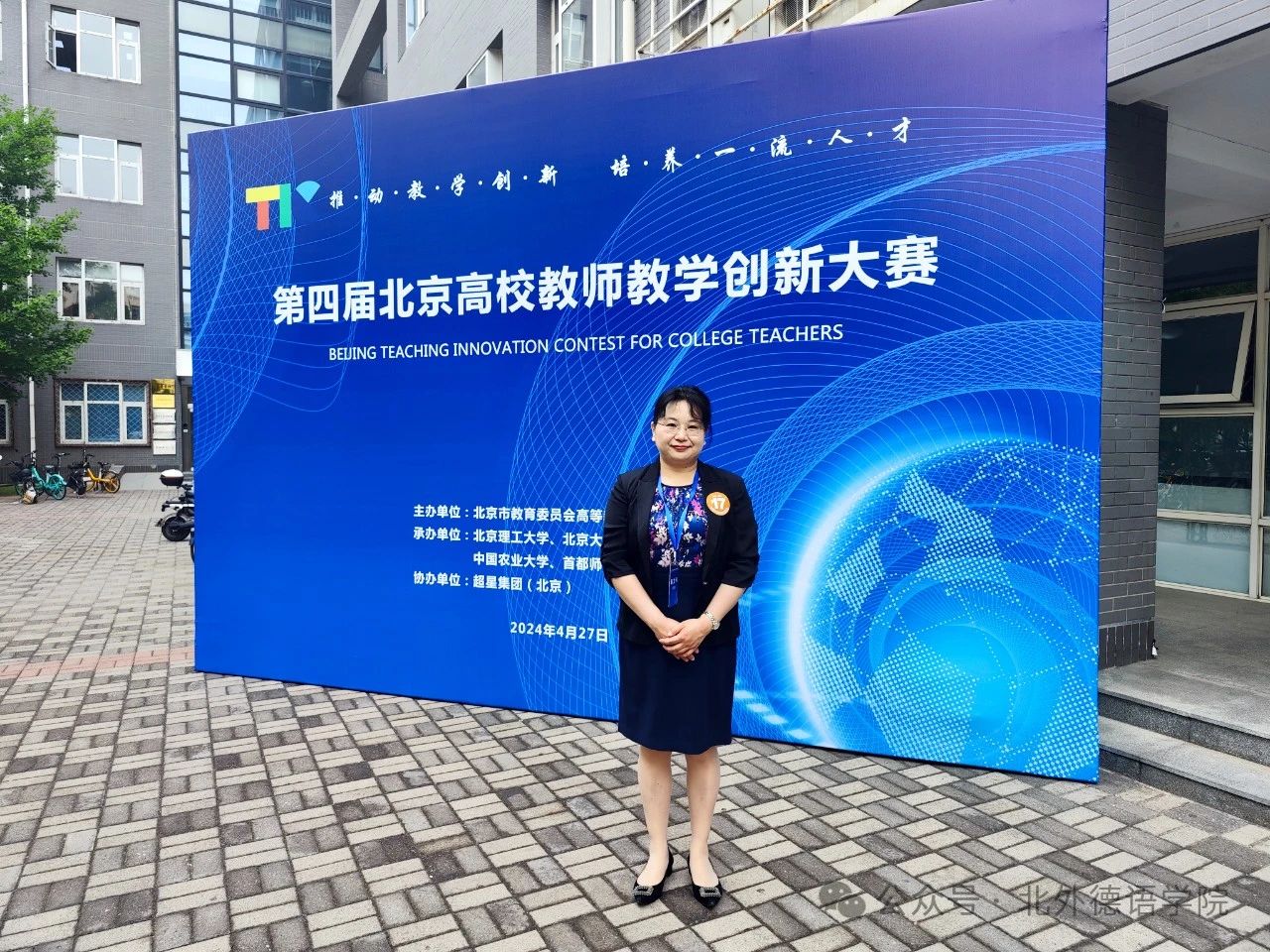 大赛于2023年11月底正式启动,历时5个月。经过学校选拔推荐和市级网络评审,徐四季、寇蔻团队于2024年4月初顺利进入现场评审环节。4月27日,第四届北京高校教师教学创新大赛现场评审环节在北京理工大学中关村校区举行;参赛选手以良好状态和饱满热情展示了教学创新成果,并即席回答了评委专家的提问。经过一天激烈角逐,徐四季、寇蔻团队凭借参赛课程《德语经济知识导论》荣获新文科副高组三等奖。